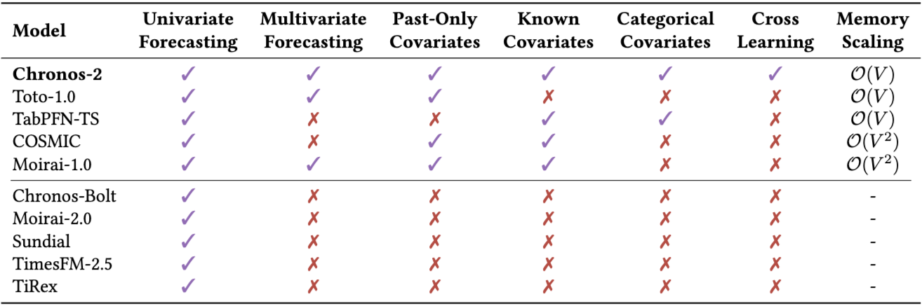 ๋จ๋ณ๋, ๋ค๋ณ๋, ๊ณต๋ณ๋ ์ ๋ณด๊ฐ ํฌํจ๋ ์์ ์ ํฌํจํ ๊ด๋ฒ์ํ ์์ธก ์๋๋ฆฌ์ค๋ฅผ zero-shot์ผ๋ก ์ฒ๋ฆฌํ ์ ์๋ chronos-2๋ฅผ ๊ฐ๋ฐํ์์